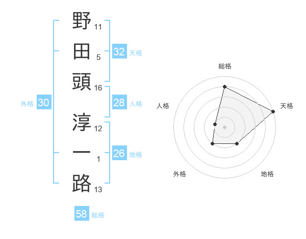 野田頭 淳一路さんを姓名の画数から五運を鑑定