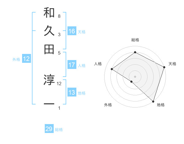 和久田 淳一さんを姓名の画数から五運を鑑定