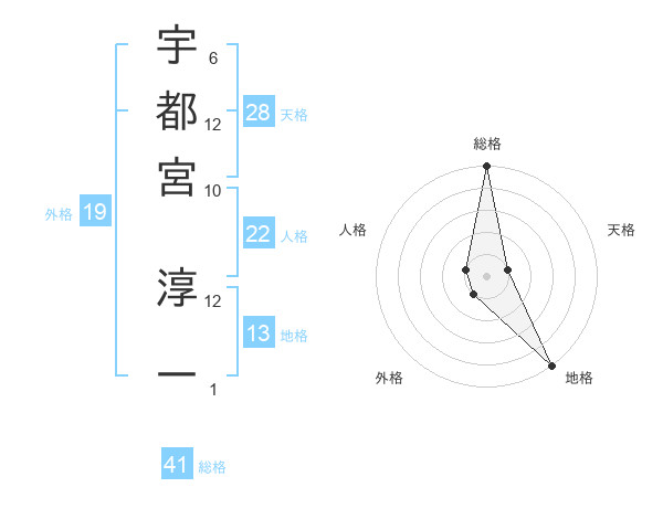 宇都宮 淳一さんの総格は41画の5点!