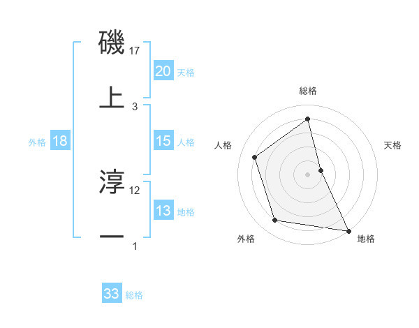 磯上 淳一さんを姓名の画数から五運を鑑定