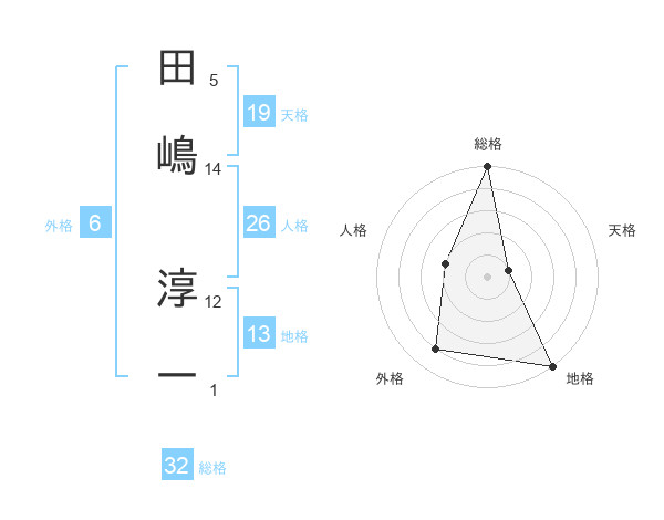 田嶋 淳一さんを姓名の画数から五運を鑑定