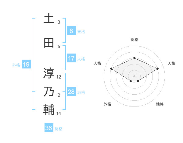 土田 淳乃輔さんを姓名の画数から五運を鑑定