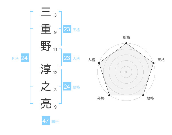 三重野 淳之亮さんを姓名の画数から五運を鑑定