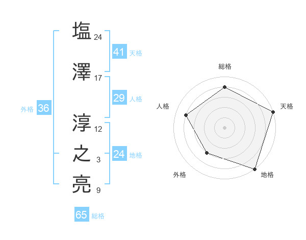 塩澤 淳之亮さんの総格は65画の4点!