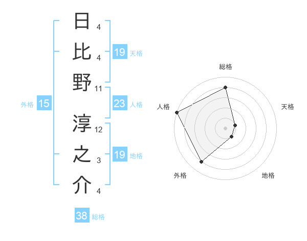 日比野 淳之介さんを姓名の画数から五運を鑑定