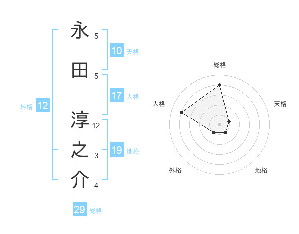 永田 淳之介さんの総格は29画の4点