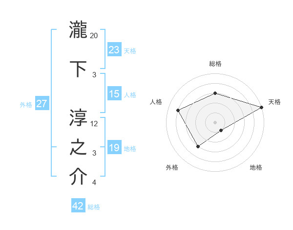 瀧下 淳之介さんを姓名の画数から五運を鑑定