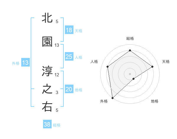 北園 淳之右さんを姓名の画数から五運を鑑定