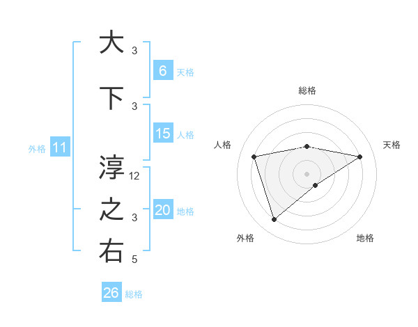 大下 淳之右さんを姓名の画数から五運を鑑定