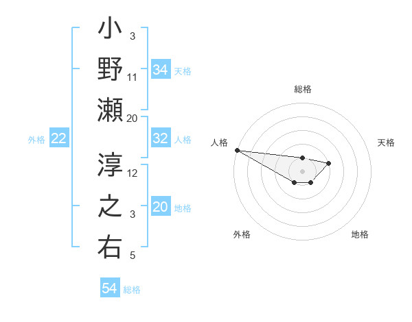 小野瀬 淳之右さんの総格は54画の1点!