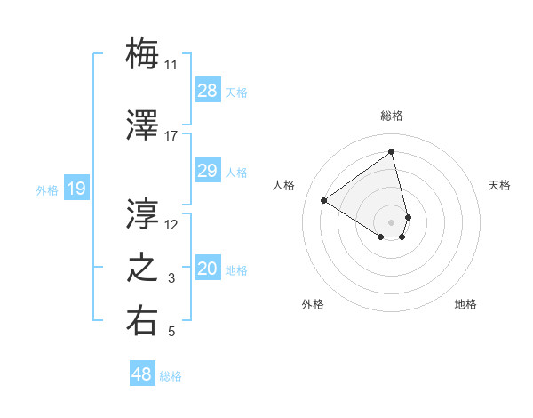 梅澤 淳之右さんを姓名の画数から五運を鑑定
