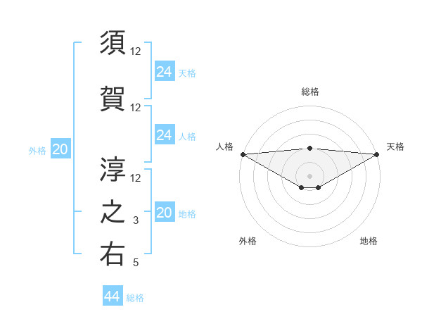 須賀 淳之右さんを姓名の画数から五運を鑑定