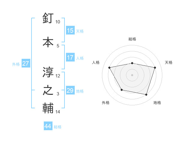 釘本 淳之輔さんを姓名の画数から五運を鑑定