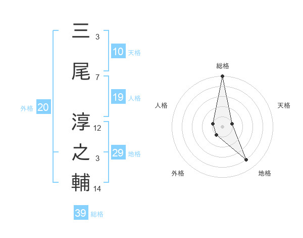 三尾 淳之輔さんの総格は39画の5点!