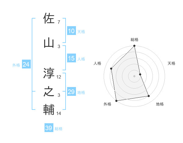 佐山 淳之輔さんの総格は39画の5点!