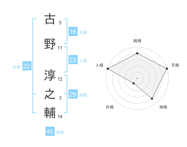 古野 淳之輔さんを姓名の画数から五運を鑑定