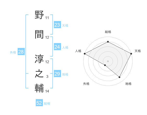 野間 淳之輔さんを姓名の画数から五運を鑑定