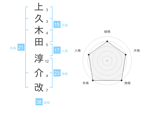 上久木田 淳介改さんの総格は38画の4点!