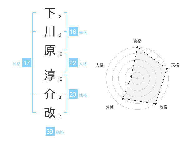 下川原 淳介改さんを姓名の画数から五運を鑑定