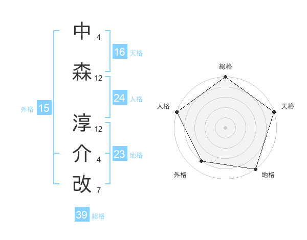 中森 淳介改さんを姓名の画数から五運を鑑定