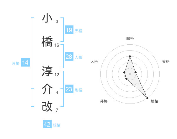 小橋 淳介改さんを姓名の画数から五運を鑑定