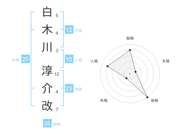 白木川 淳介改さんを姓名の画数から五運を鑑定