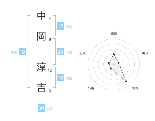 中岡 淳吉さんを姓名の画数から五運を鑑定