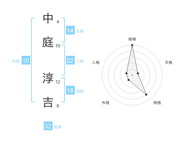 中庭 淳吉さんの総格は32画の5点!