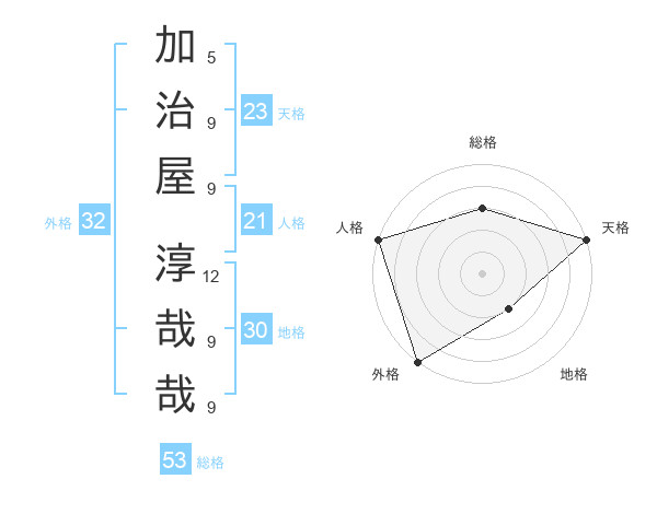 加治屋 淳哉哉さんの天格は23画の5点!