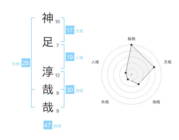 神足 淳哉哉さんを姓名の画数から五運を鑑定