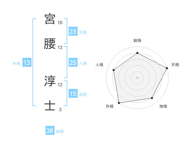 宮腰 淳士さんを姓名の画数から五運を鑑定