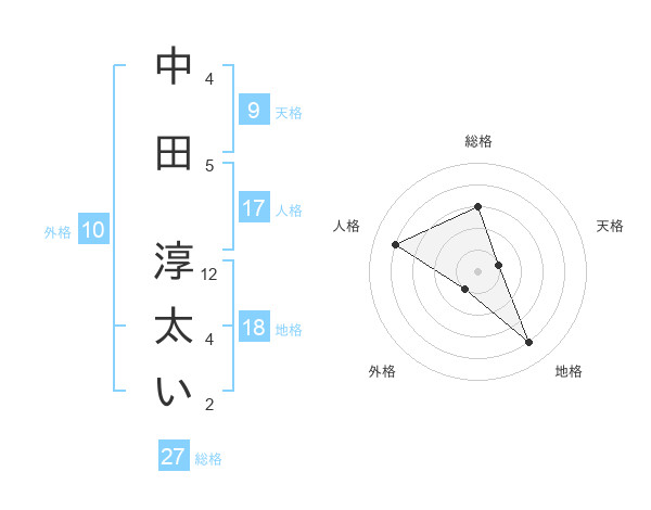中田 淳太いさんを姓名の画数から五運を鑑定
