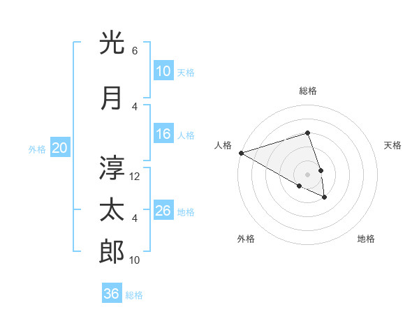 光月 淳太郎さんの天格は10画の1点!