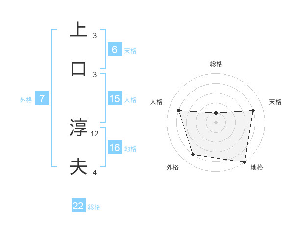 上口 淳夫さんを姓名の画数から五運を鑑定
