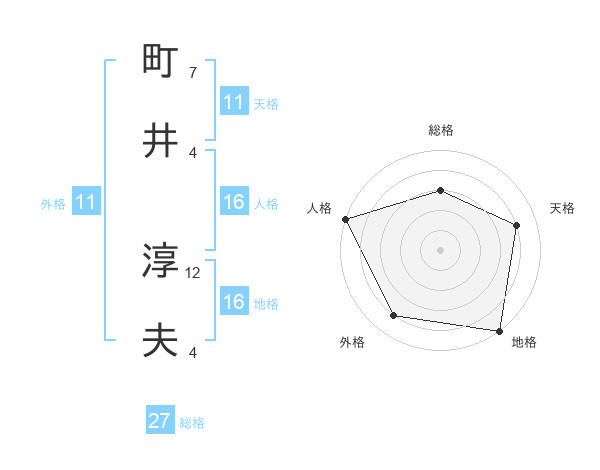 町井 淳夫さんの天格は11画の4点!