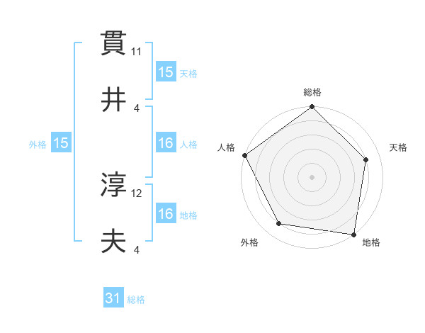 貫井 淳夫さんを姓名の画数から五運を鑑定