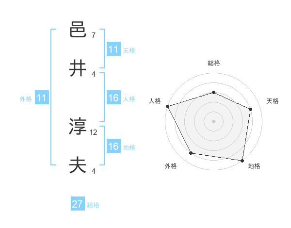 邑井 淳夫さんを姓名の画数から五運を鑑定