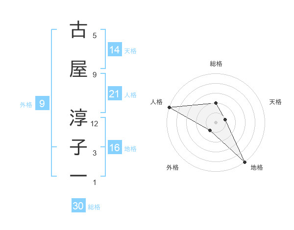 古屋 淳子一さんを姓名の画数から五運を鑑定