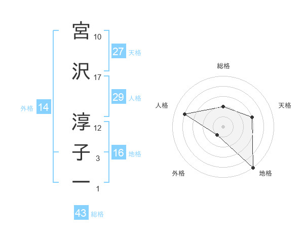 宮沢 淳子一さんを姓名の画数から五運を鑑定