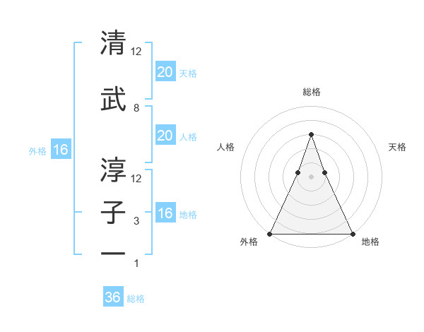 清武 淳子一さんの外格は16画の5点!