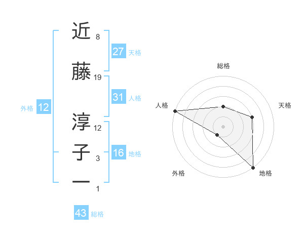 近藤 淳子一さんを姓名の画数から五運を鑑定