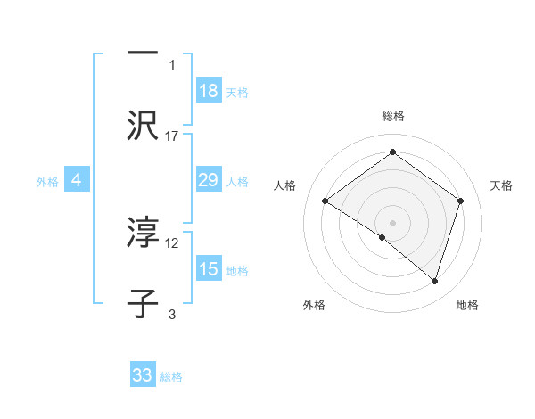 一沢 淳子さんを姓名の画数から五運を鑑定