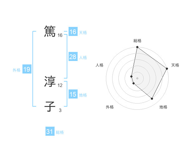 篤 淳子さんの外格は19画の1点!