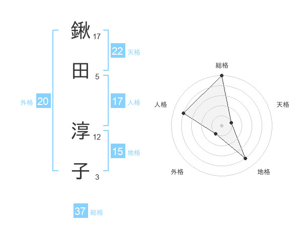 鍬田 淳子さんを姓名の画数から五運を鑑定