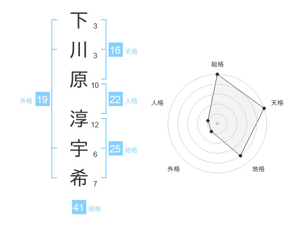下川原 淳宇希さんを姓名の画数から五運を鑑定