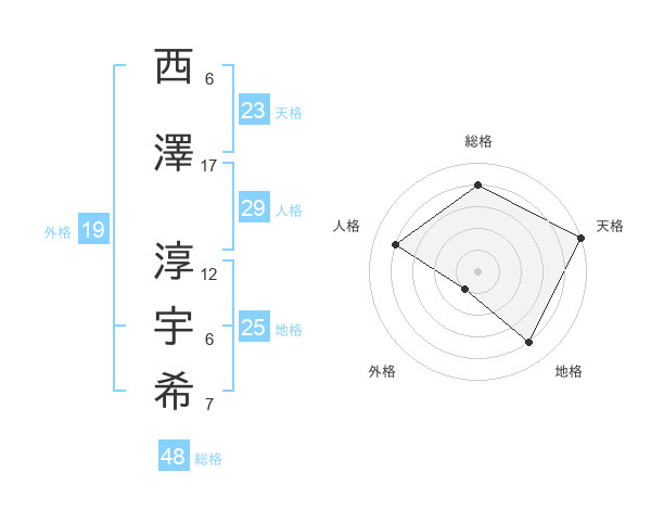 西澤 淳宇希さんを姓名の画数から五運を鑑定