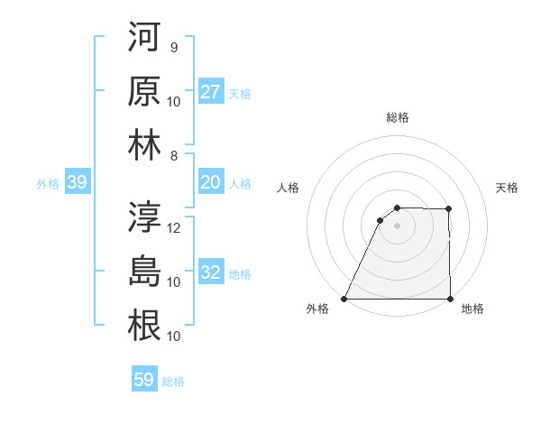 河原林 淳島根さんを姓名の画数から五運を鑑定