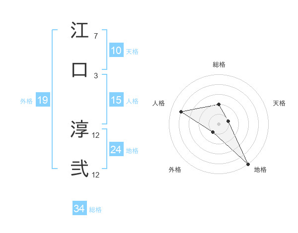 江口 淳弐さんを姓名の画数から五運を鑑定