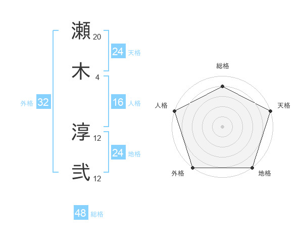 瀬木 淳弐さんを姓名の画数から五運を鑑定
