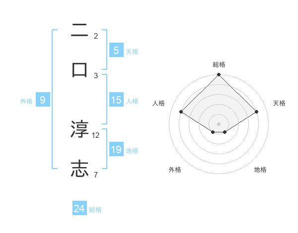 二口 淳志さんの天格は5画の4点!